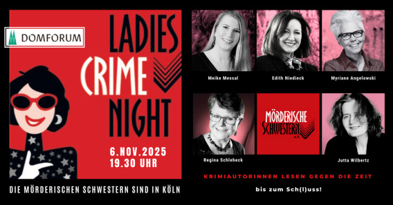 - 14. November 2024 Ladies Crime Night in Köln am Dom mit Meike Messal, Edith Niedieck, Regina Schleheck, Jutta Wilbertz und Myriane Angelowski - Moderation: Gabriele Hammelrath